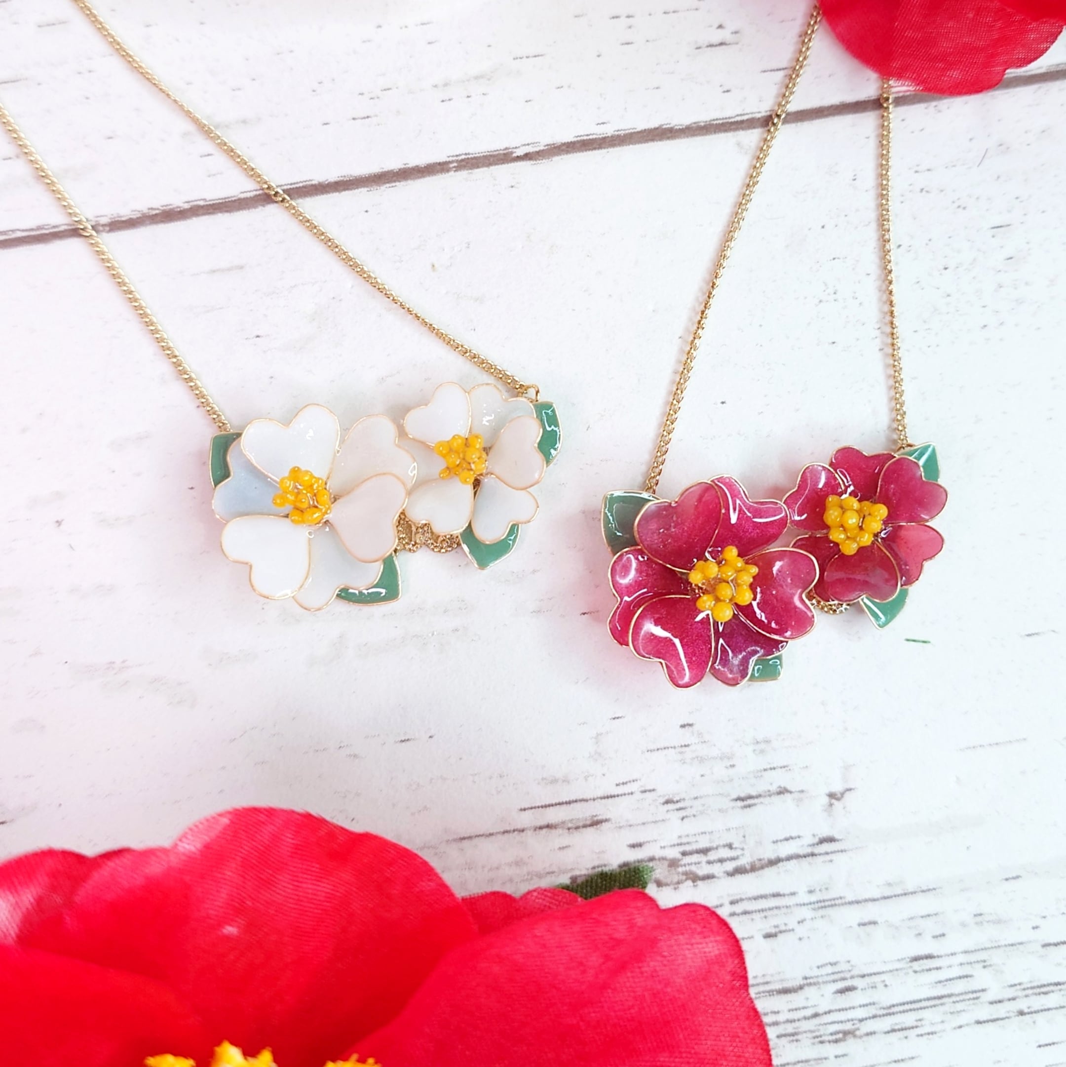 『椿のネックレス(赤・レッド系/白・ホワイト系)』