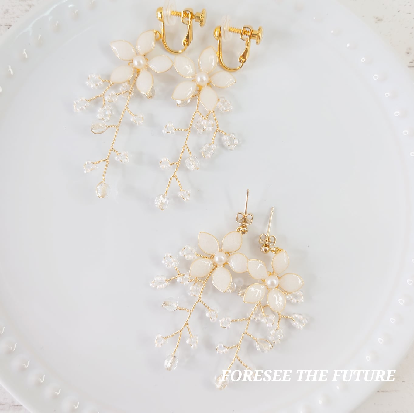 画像はピアスですが、イヤリングに変更可能です。
