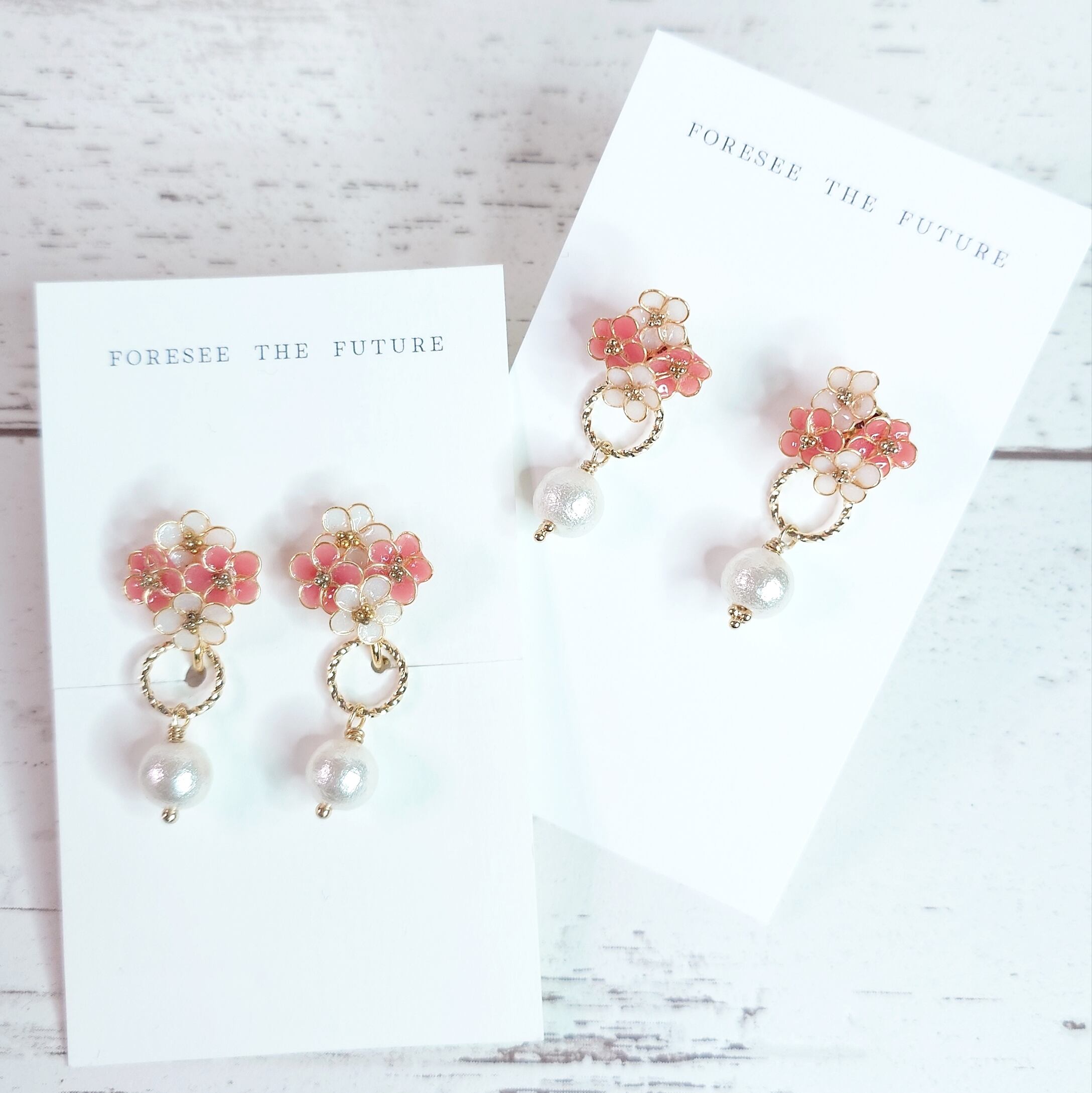 【選べるセミオーダー】フルーレットシリーズ(白&桃ピンク色系)~かわいい✾お花シリーズ~ピアス/イヤリング/ネックレス/リング/ディップレジン/ アメリカンフラワー/ワイヤー フラワー/ 小花/ かわいい/お洒落 /