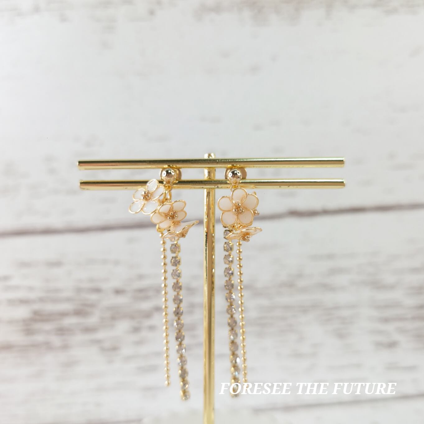『フルーレットシリーズ・輝き(白ホワイト:ロング)~かわいい✾お花シリーズ~ ピアス/イヤリング』