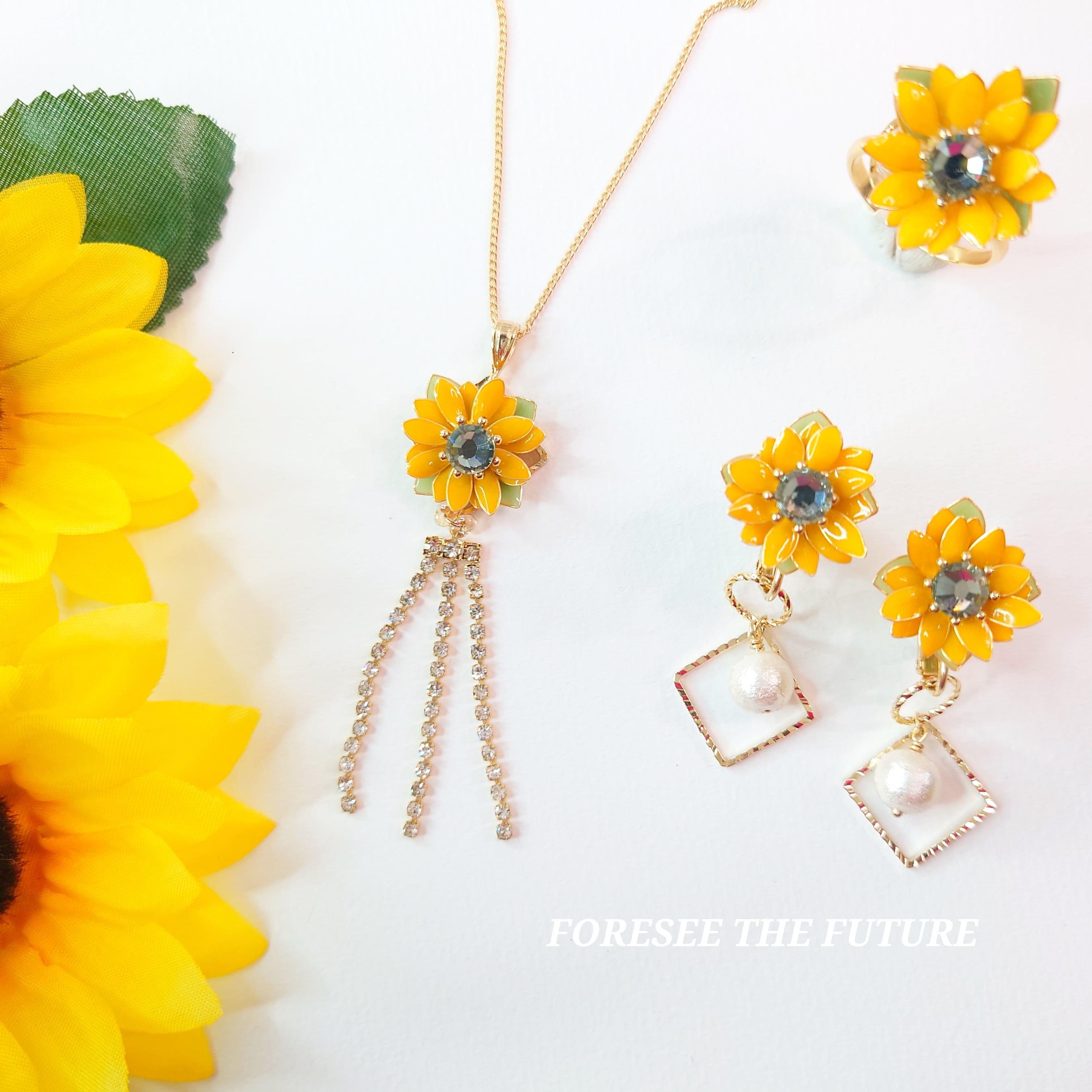 向日葵のネックレス ピアス/イヤリング/ディップレジン/ アメリカンフラワー/ワイヤー フラワー/ 花/ かわいい/お洒落 /