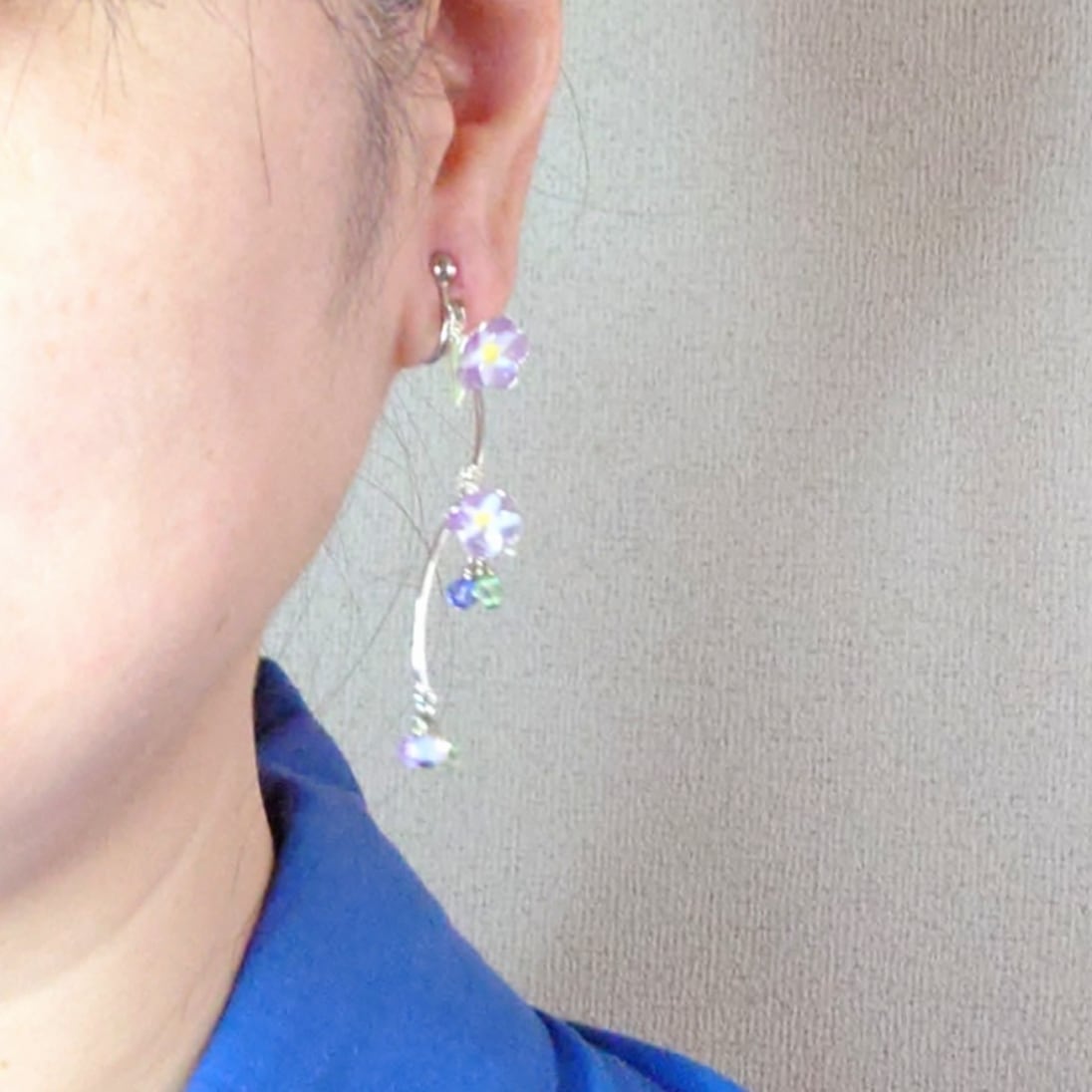 朝顔のイヤーアクセサリー【シルバータイプ】 ピアス/イヤリング/ディップレジン/ アメリカンフラワー/ワイヤー フラワー/ 花/ かわいい/お洒落 /