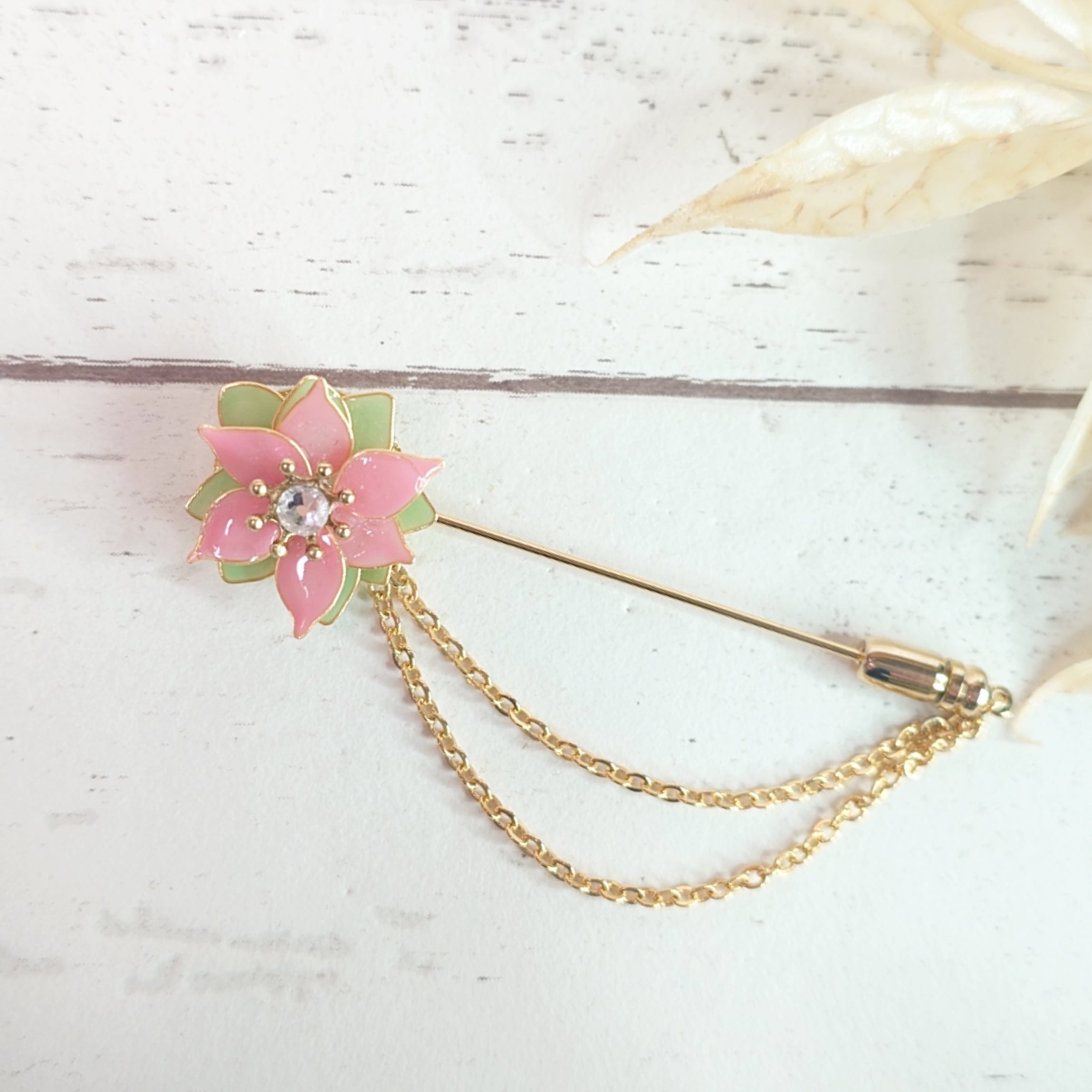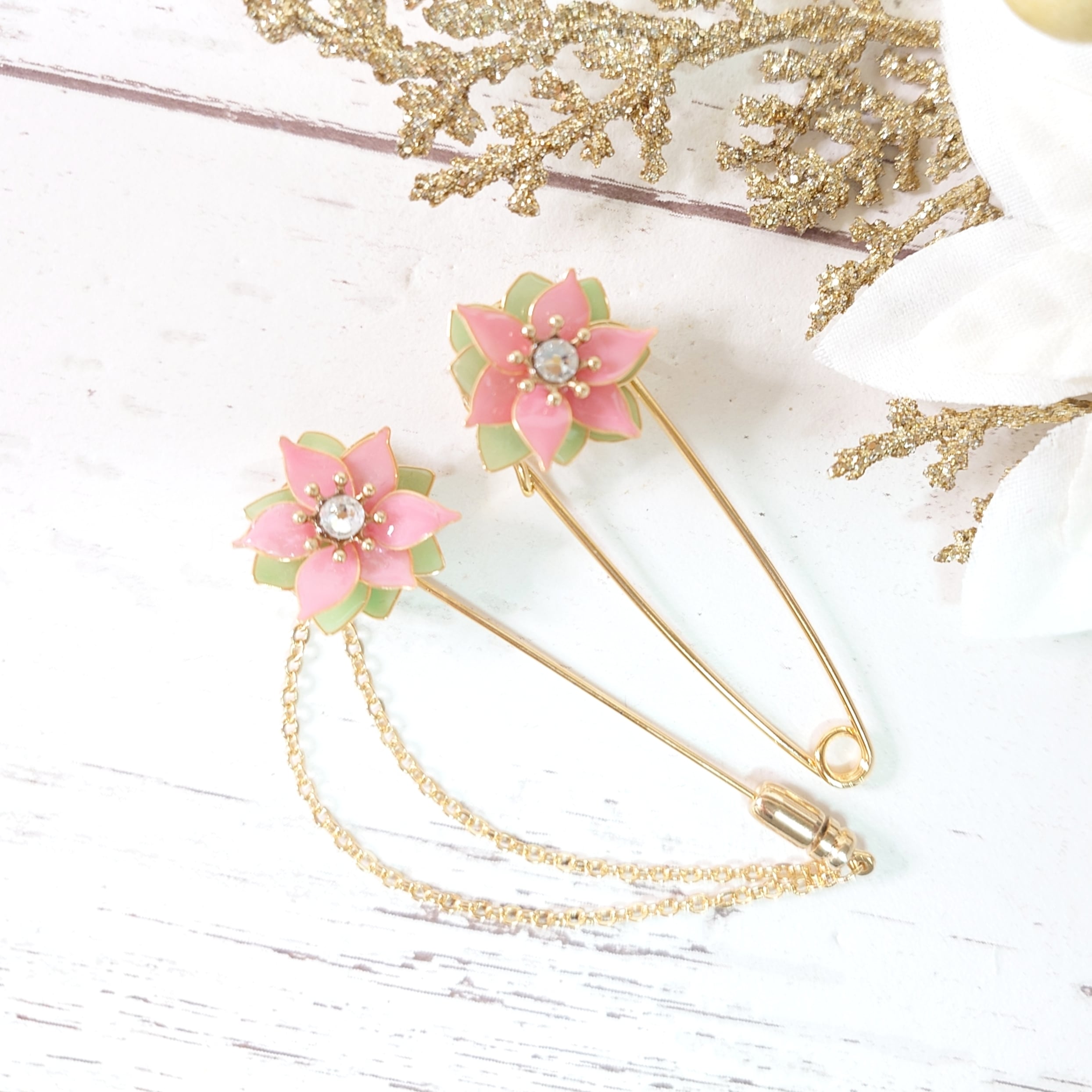 ポインセチアのブローチ(ピンク系) カブトピン/ハットピン/ディップレジン/ アメリカンフラワー/ワイヤー フラワー/ 花/ かわいい/お洒落 /クリスマス